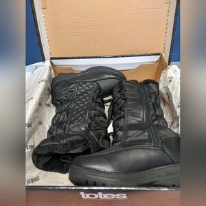 Totes Donna Black Quilted Fur-Lined Boots