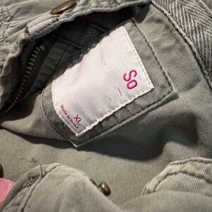 Casual hooded utility jacket in muted olive. Front zipper with snap placket. Dual front pockets for storage. Adjustable hem for fit. Durable cotton-blend fabric.