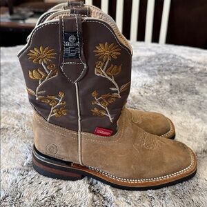 Maury Kids Western Boots Youth Size 2 Tan Brown Leather Cowboys Cowgirl Farm