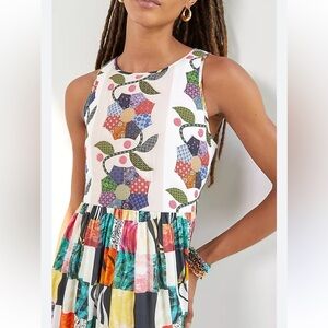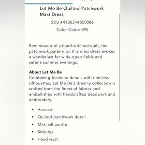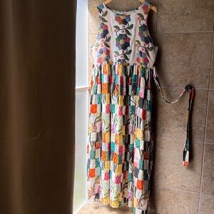 Anthropologie Let Me Be Quilted Patchwork Maxi Dress Size L - New With Tags - Quilted Bodice - Pockets - Back Zip - Attached Tie Belt - Gorgeous flowy maxi, 54” shoulder to hem.