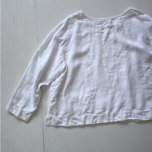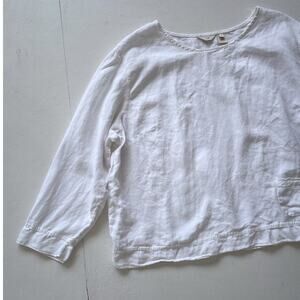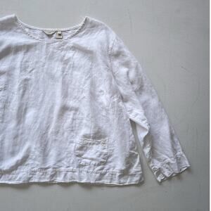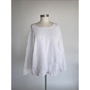 J. JILL White Linen Long Sleeve Pocket Top / Sz 3X / Lagenlook Minimal Casual