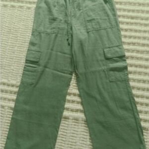 GAP Linen Blend Ankle Length Cargo Pants in Olive Green. 27" drawstring waist. 26" inseam. NWT. Smoke-free home.
