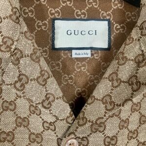 Stylish Gucci shirt with signature monogram pattern. Perfect for casual outings. AUTHENTIC GUCCI SHORT SLEEVE