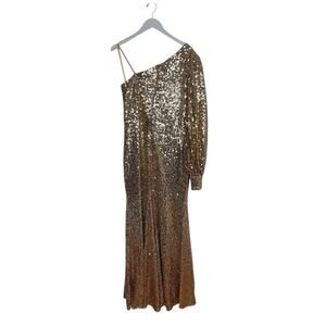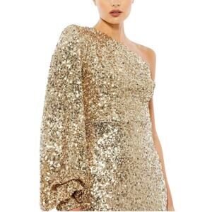 Mac Duggal 26717 Gold Sequin One Shoulder Bishop Sleeve Trumpet Gown Size 14