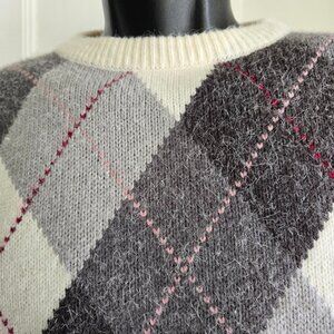 Classic Alfred Dunner Argyle Light/Dark Gray & White Sweater Size S