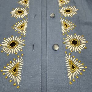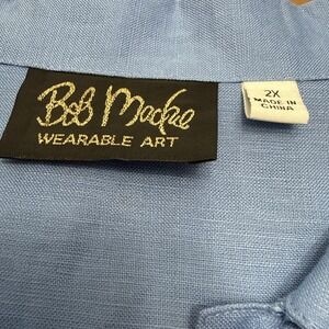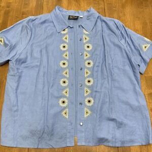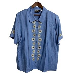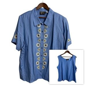 Bob Mackie linen blend shirt tank top set women's 2X blue embroidered flowers