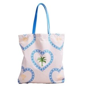New Anthropologie x Celandine Graphic Canvas Tote, Pink Stripe.