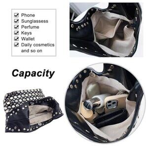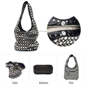 Black Vegan Leather Studded Tote Bag Women Y2K Hobo Shoulder Purse