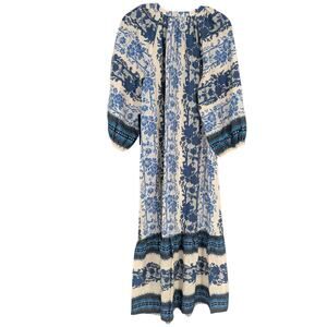 Beautiful Tuckernuck blue and white floral midi dress in a romantic, bohemian-inspired silhouette. This flowy dress features an intricate floral and border print, a relaxed peasant-style fit, and softly gathered neckline for an effortlessly chic look.