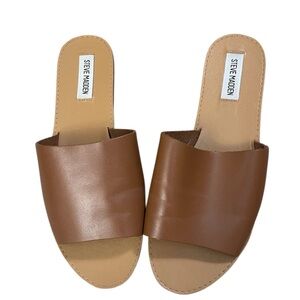 Steve Madden Grace Tan Leather Slide Open Toe Mule Sandals