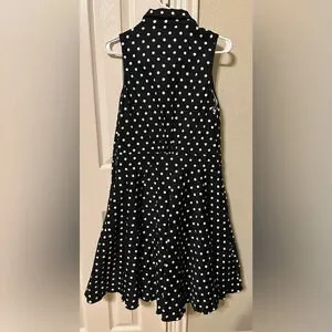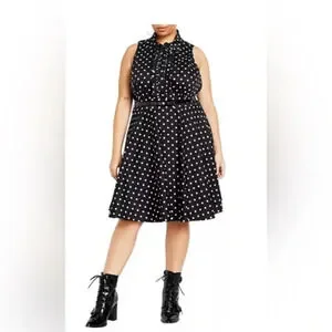 Revive a touch of retro elegance with the black spot Nellie Dress. This sleeveless LBD showcases a figure-flattering fit and flare silhouette, adding a timeless style to your wardrobe. Perfect for making a chic fashion statement.