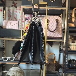 Fendi Black Kani Leather Satchel with Multicolored Stud Accents and Charm