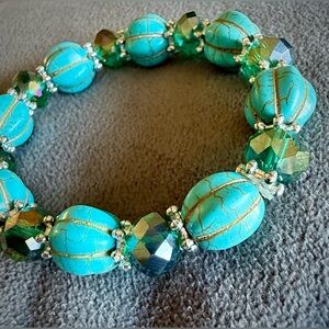 Elegant bracelet featuring turquoise and green beads, perfect for adding a touch of color to your ensemble.