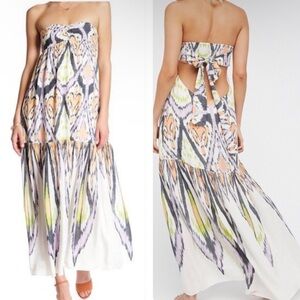 Free People Mojave Aztec Strapless Tie Smocked Open Back Maxi Dress