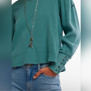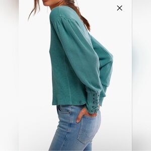 Free People Lapis Cuff Waffle Knit Top In Cypress- Large