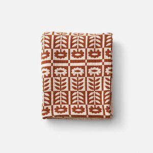 The bold color-blocking and symmetrical design evoke traditional applique, while the mirrored floral pattern allows for versatile styling. Crafted from 100% cotton in Portugal, this jacquard woven textile provides a cozy weight and lived-in texture, perfect for year-round layering. This quilt is sure to be a cherished Schoolhouse Original.