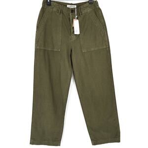 NWT Outerknown Sz 28 Olive Green Utility Military Organic Ctn Wide Leg Pockets