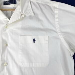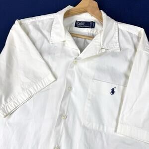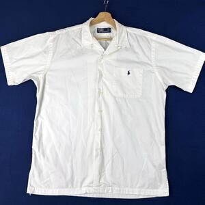 Polo Ralph Lauren Cotton Camp Shirt Button up short sleeve Men size M White Prep