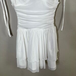 Lulus Luisella White Ruched Deep V Mesh Tiered Tie Shoulder Mini Dress Size XS