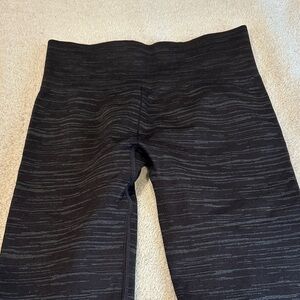 Charcoal leggings with subtle stripes. Ideal for fitness and leisure. Worn a couple of times , logo has a small crack on it . Other then that in great condition.