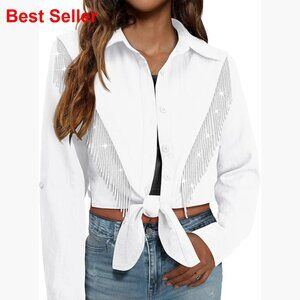 ✨ Sparkly Fringe Cropped Button Down Shirt