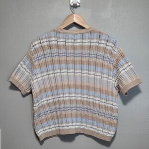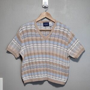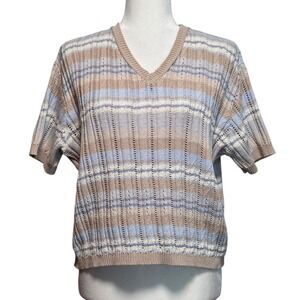Vintage 90s Liz Claiborne Striped Knit Sweater Petite M Preppy Coastal Pastel