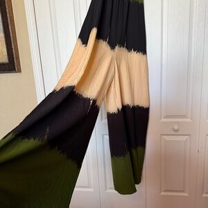 Make a bold yet effortless statement with this Fashion Nova "On My Horizon" jumpsuit! Featuring an eye-catching olive, black, and beige colorblock design, this flowy wide-leg jumpsuit offers a perfect balance of boho chic and casual elegance. With its adjustable spaghetti straps and lightweight fabric, this piece is designed for comfort and style all in one!