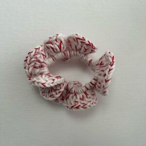 White and Red Crochet Hair Scrunchie