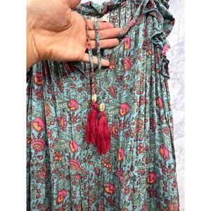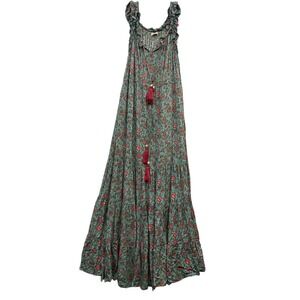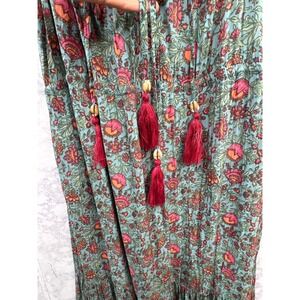 Natural Life Havana Nights Floral Tassel Boho Tiered Maxi Dress Festival M
