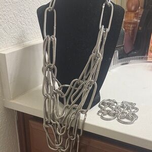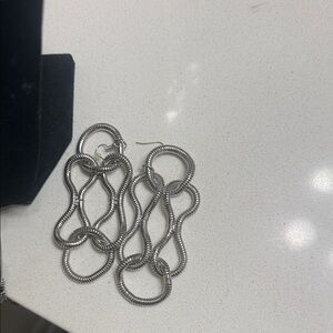 Statement dangle earrings from Sassy Jones. Intricate linked loops create a sculptural look. Polished silver-tone finish adds shine. Lightweight and wearable for any outfit.