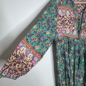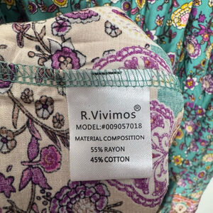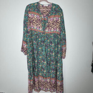 R. Vivimos Boho Floral Midi Dress 2XL Long Sleeve Tassel