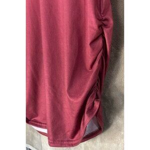Womens V Neck Short Sleeve Cold Shoulder Cutouts Shirt Light Rose Burgundy, Wine