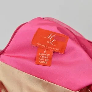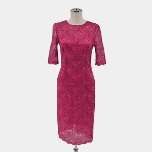 MONIQUE LHUILLIER Dress Sz 6 Pink Lace Sheath Floral Overlay Scalloped Cocktail