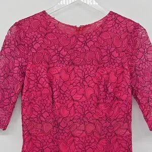 ML MONIQUE LHUILLIER Dress Women's Size 6 Pink Floral Lace Overlay Knee Length Chic Classy Elegant Event Party Cocktail Vacation
