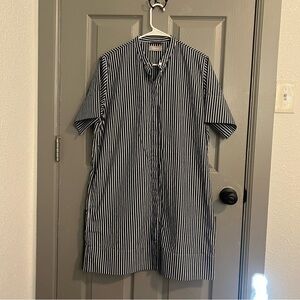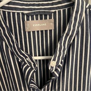 Everlane Women’s Blue and White Striped Button Down Cotton Dress