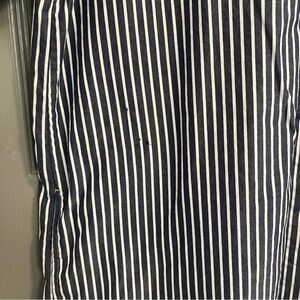 Stylish blue and white stripes. Casual button-down design. Ideal for versatile wear. Is flawed, has marker spots next to right pocket. Not super noticeable, would still make a great dress for everyday wear or vacation. Please see all photos.