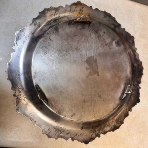 Enhance your home decor with this elegant silver decorative wall plate. Its intricate design adds a touch of sophistication to any room. I polished this up as seen in the first two photos. The last ones are when I first acquired it. Magnet does not stick to it but I do not see any marking on the dish c