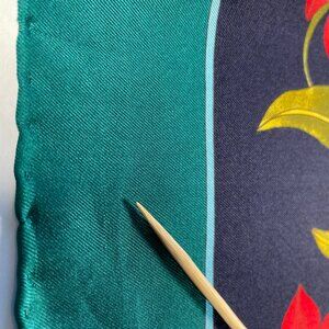 Gucci Vintage Silk Scarf 34” Floral Butterfly Baroque Green Multicolor