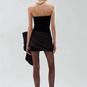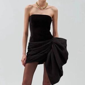Chic strapless dress with elegant draping. Perfect for evening wear.