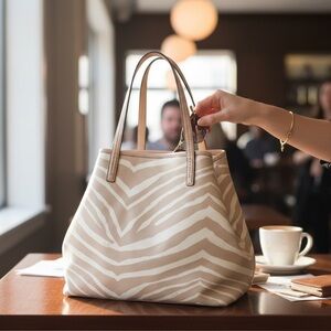 Coach tan zebra print tote bag