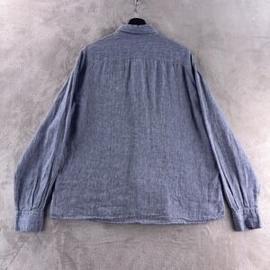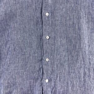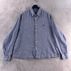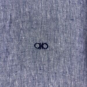 Salvatore Ferragamo Button Down Shirt Mens Size XXL Blue Linen Long Sleeve