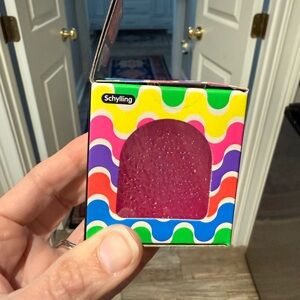 Bright pink squishy toy in a colorful box. Perfect for stress relief and fun.