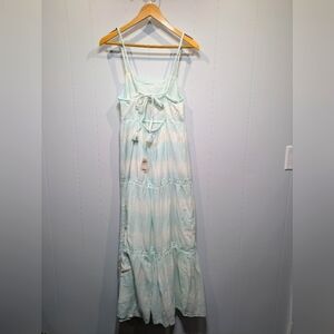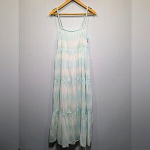 Aerie Light Blue Tie Dye Tiered Max Dress Size Medium Boho Summer