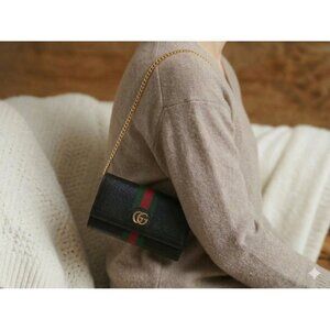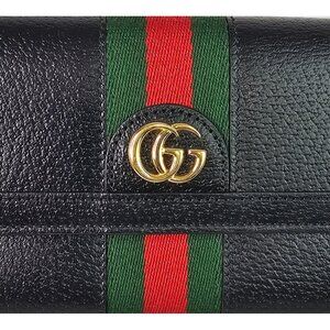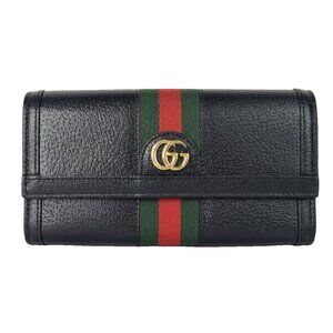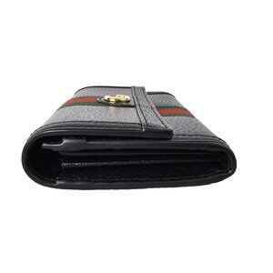 GUCCI Calfskin Web Ophidia Continental Wallet Black Striped Flap Leather GG Bag