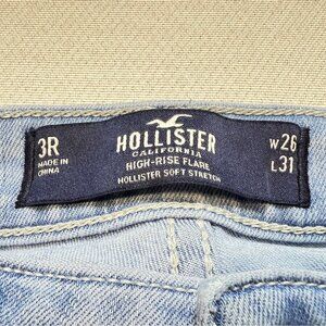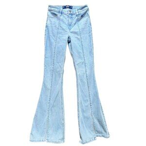 Hollister Junior High-Rise Flare Jeans 3R Blue Denim Light Wash Stretch Slit