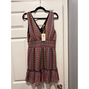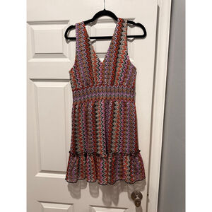 Women's Ramy Brook Mini Dress Size 8 Orange Pink Zigzag