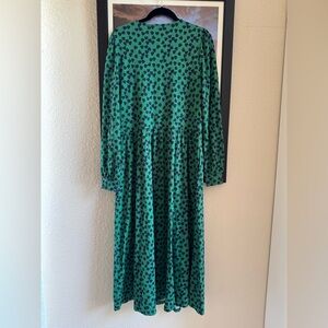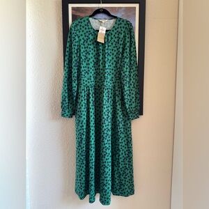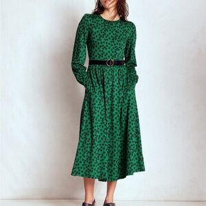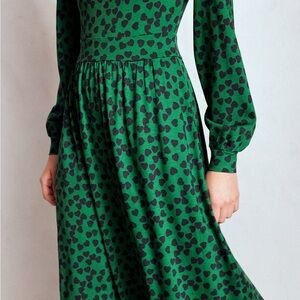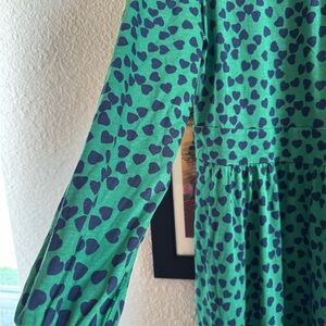 Boden NWT Alexandra Jersey Midi Dress Green Navy Hearts size US 14 R