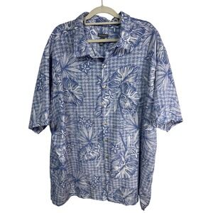Van Heusen Button Up Men's Tropical Floral Print Blue 3XLT