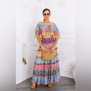 Embrace vibrant style with this multicolor floral maxi skirt set. Perfect for any occasion, this skirt features a beautiful blend of colors that add a lively touch to your wardrobe.