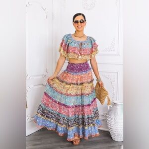 Multicolor Floral Maxi Skirt Set